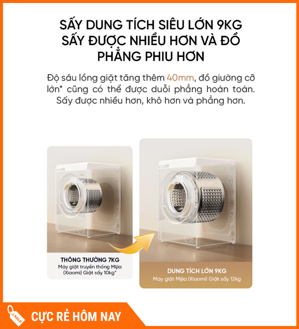 Khả năng sấy 9kg giúp quần áo khô nhanh – mặc ngay – không cần phơi