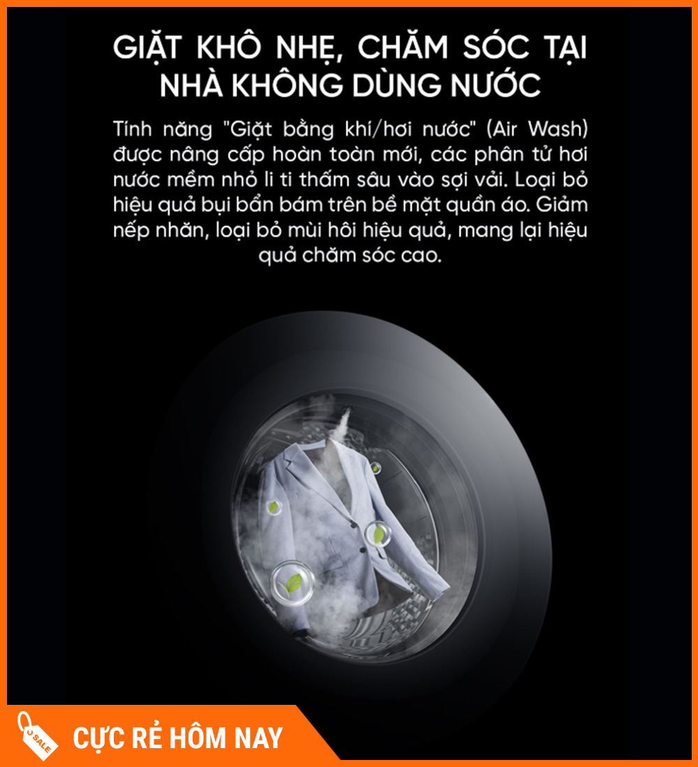 | Công nghệ giặt sấy | Hơi nước, cảm biến AI, động cơ DD |