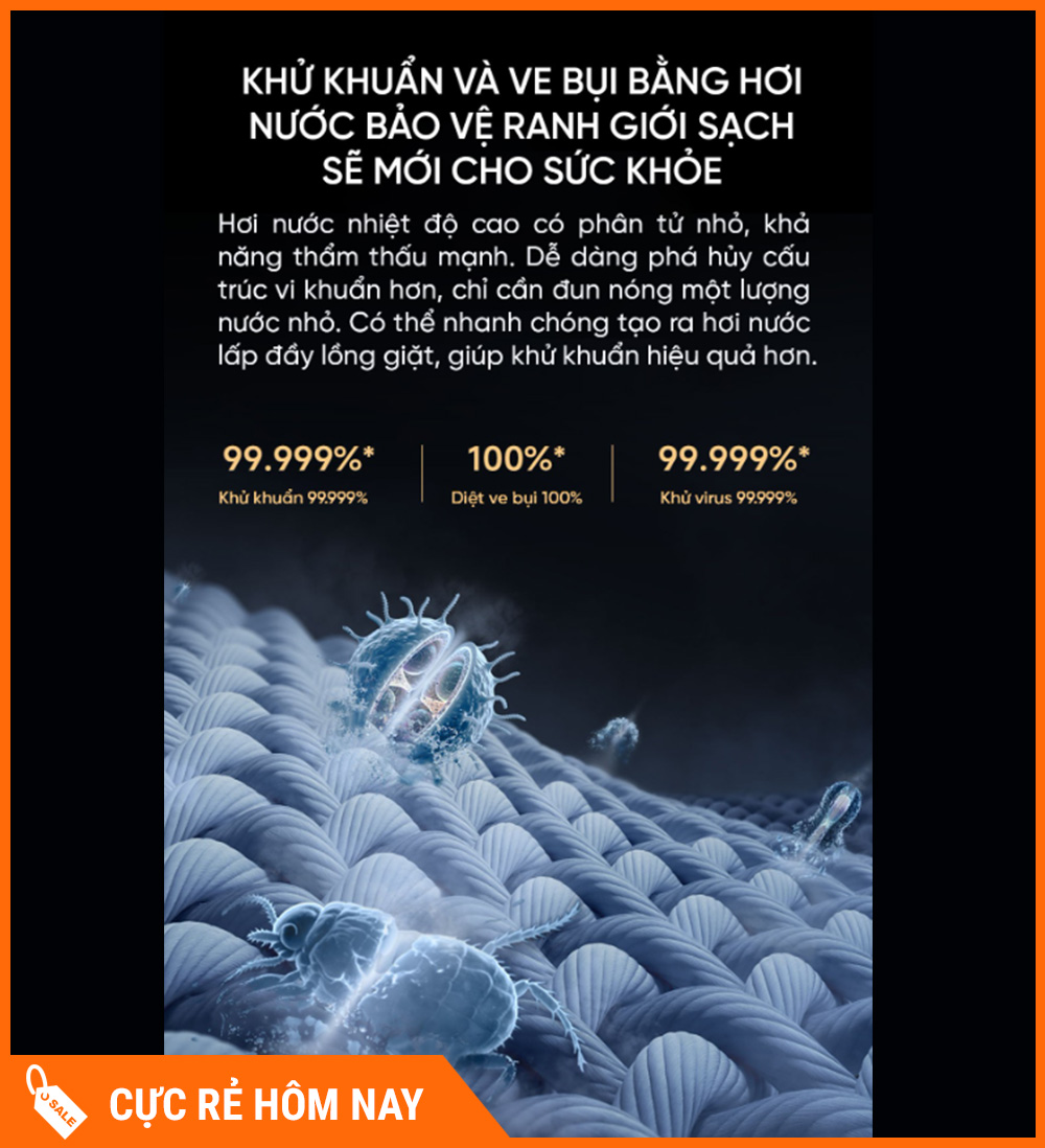 Giặt hơi nước 95°C – diệt khuẩn an toàn