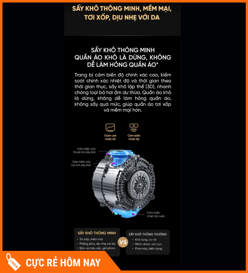 Công nghệ sấy cảm biến AI và khử mùi hơi nước giúp quần áo sau khi giặt sấy: