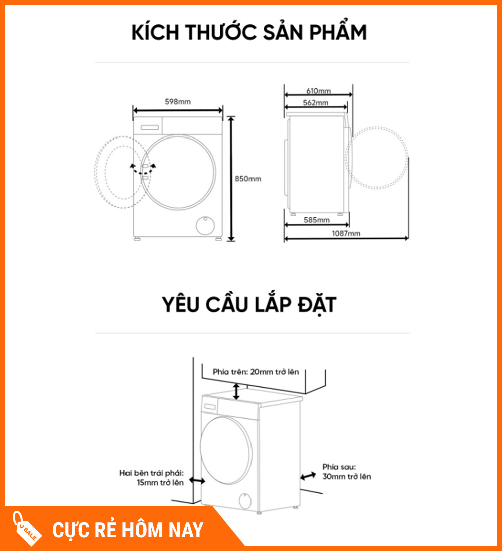 | Kích thước (DxRxC) | 598 x 610 x 850 mm |