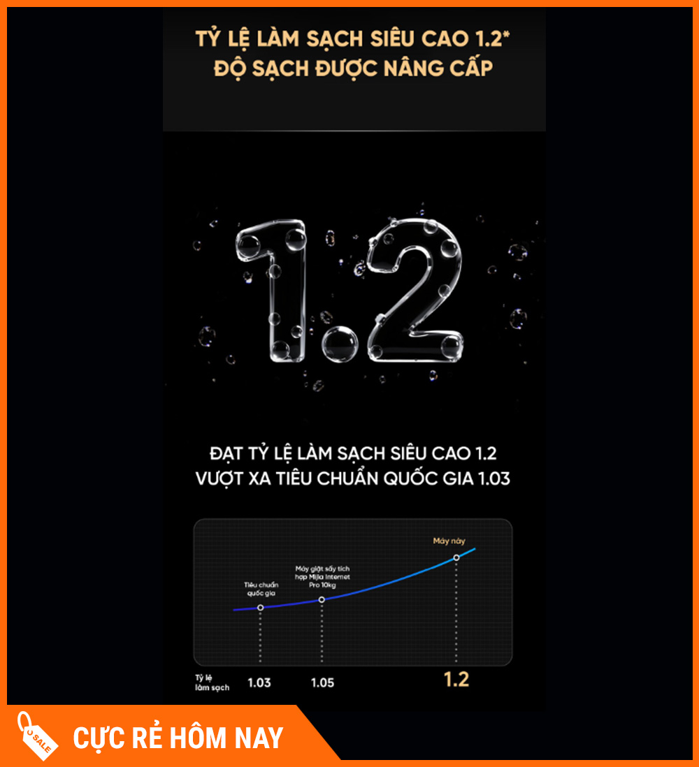 Xiaomi MJ101 đạt tỷ lệ làm sạch 1,2, cao hơn 20% so với tiêu chuẩn trung bình nhờ công nghệ cảm biến AI + vòi phun áp lực + lồng giặt đảo chiều. Máy tự nhận biết lượng đồ và chất liệu vải để điều chỉnh nước, tốc độ quay, và thời gian giặt, giúp đánh bật vết bẩn sâu mà không cần ngâm hay chà tay.