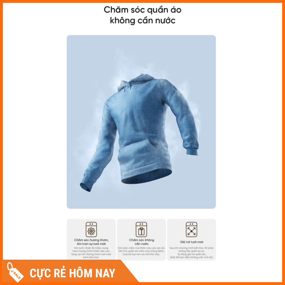 Công nghệ hơi nước thẩm thấu vào từng sợi vải, giúp khử mùi hôi, làm mềm quần áo mà không cần giặt lại.