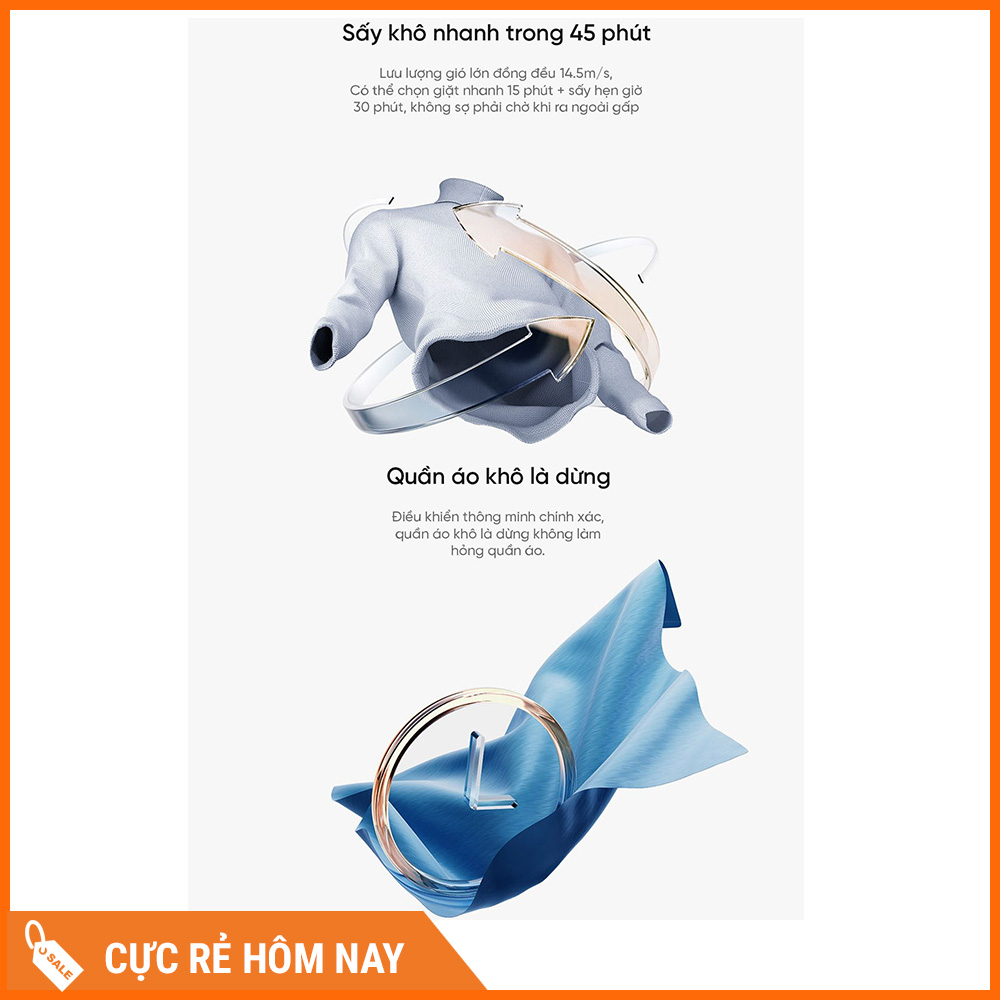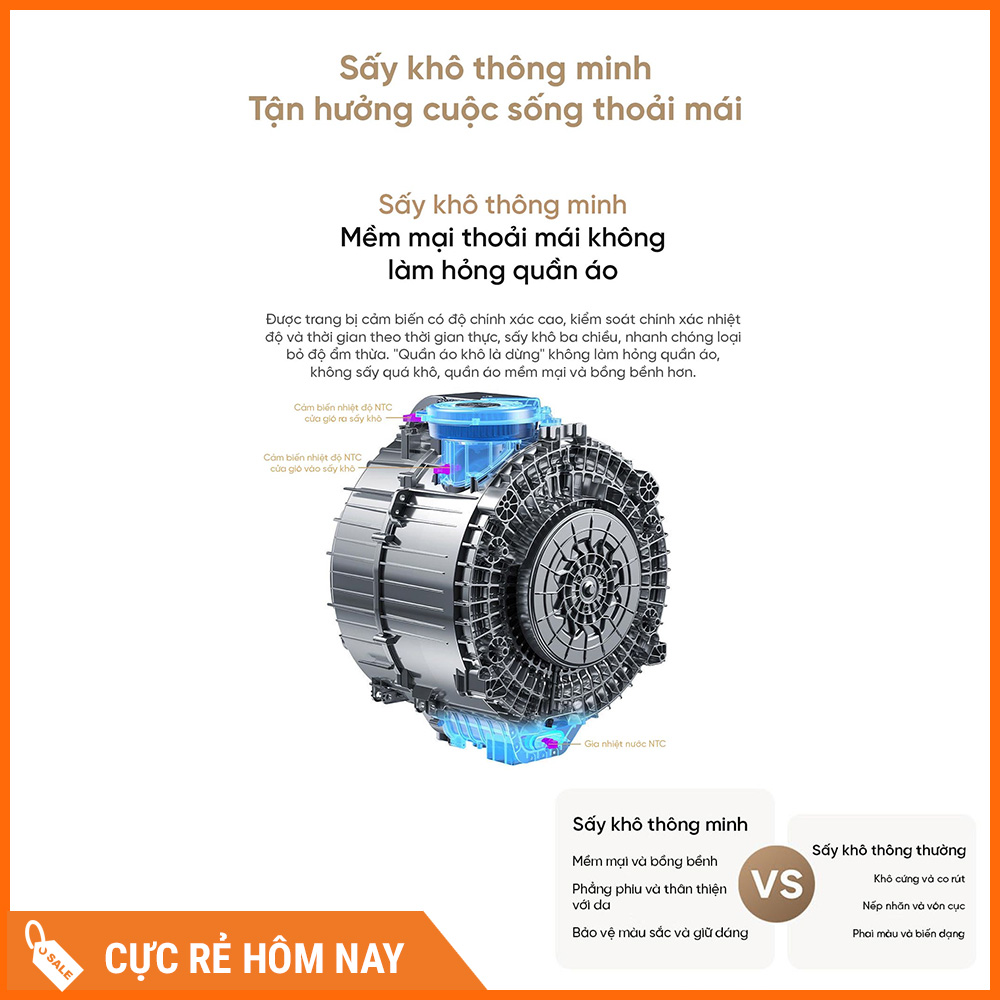 Sấy khô ba chiều: Luồng khí nóng thổi đều từ nhiều hướng, giúp quần áo khô đồng đều, mềm mại.