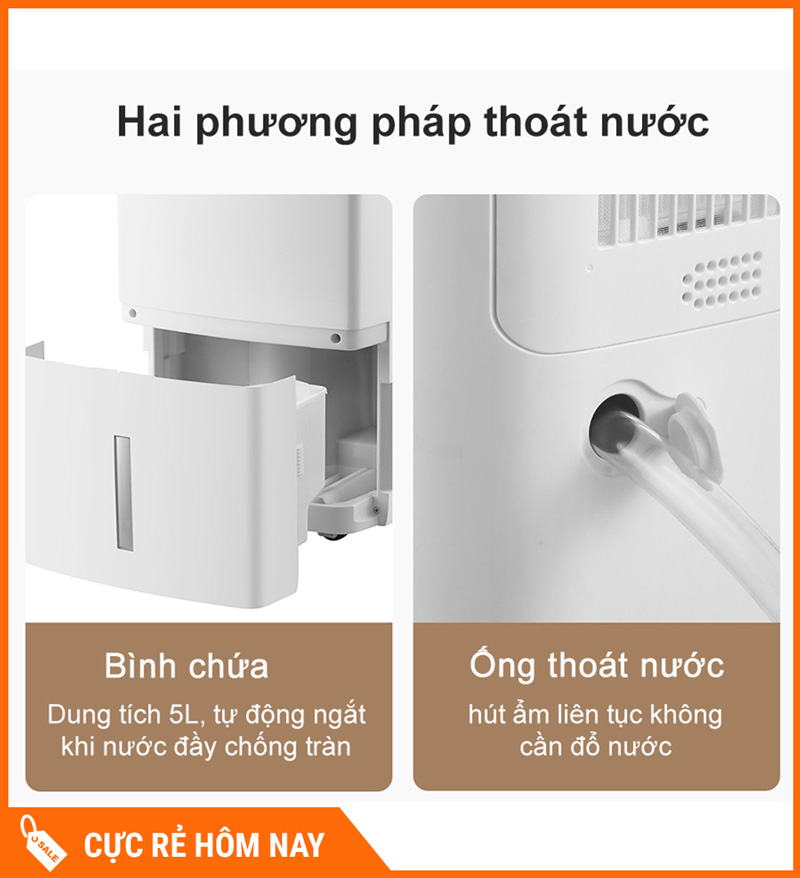 NEW WIDETECH 24L hỗ trợ 2 cách thoát nước để dùng linh hoạt theo nhu cầu thực tế (đặc biệt mùa nồm phải chạy lâu):