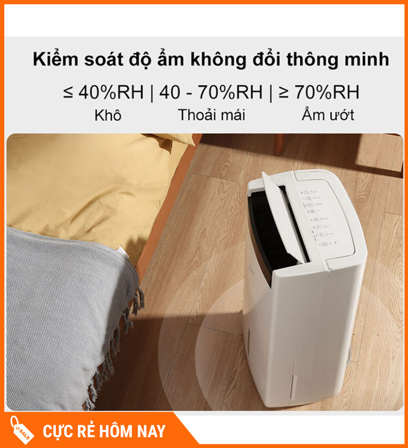 Mẹo dùng hiệu quả: đặt máy ở vị trí thoáng, chừa khoảng trống xung quanh (20–30cm), hạn chế mở cửa phòng liên tục để máy kéo ẩm nhanh hơn.