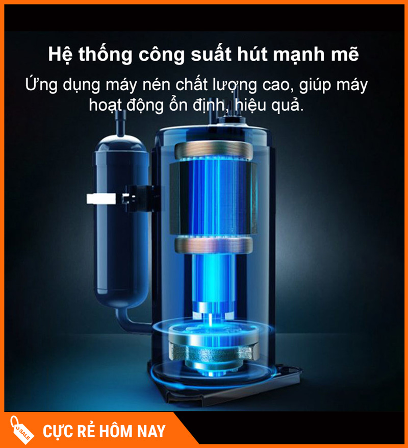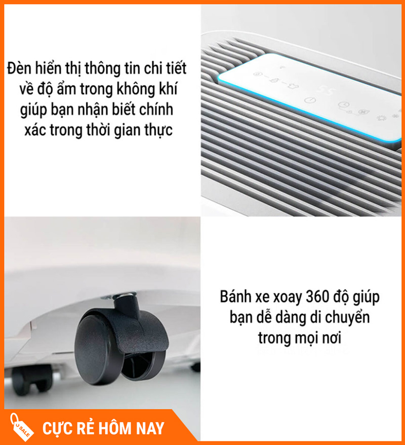 Máy được trang bị bánh xe 360°, giúp di chuyển nhẹ nhàng giữa các phòng mà không cần bê vác. Đây là điểm rất thực tế với dòng công suất lớn: một máy có thể linh hoạt phục vụ nhiều khu vực trong nhà.