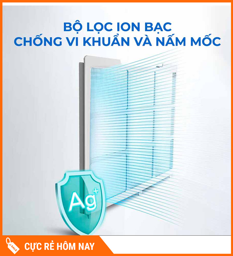Không chỉ tập trung vào việc kéo ẩm, Widetech 30L còn được trang bị bộ lọc ion bạc để hỗ trợ cải thiện cảm giác không khí trong phòng khi máy vận hành. Điều này đặc biệt hữu ích với không gian kín, nhiều đồ vải (rèm, chăn, sofa) — nơi thường dễ bám mùi ẩm khi trời nồm/mưa.