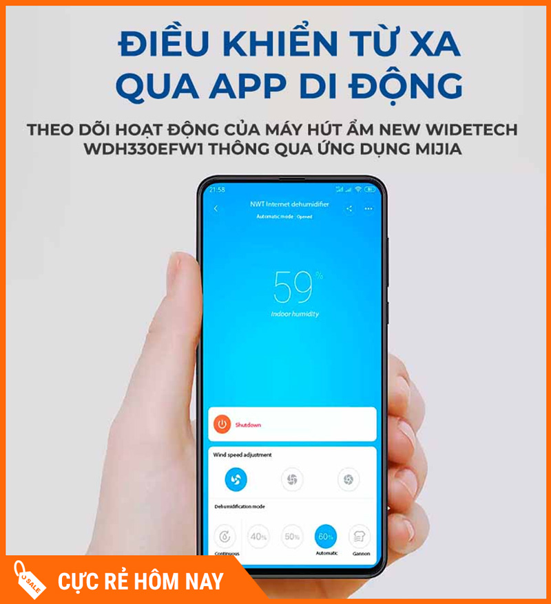 Nếu bạn đang cần một chiếc máy hút ẩm công suất lớn 30L/ngày, vừa dễ dùng tại chỗ vừa tiện quản lý từ xa, NEW WIDETECH 30L (WDH330EFW1) là lựa chọn đáng cân nhắc. Máy nổi bật nhờ theo dõi qua Mijia, thoát nước bơm linh hoạt, bình 7L tiện dụng, màn hình hiển thị độ ẩm rõ ràng và bánh xe 360° giúp di chuyển dễ dàng—rất phù hợp mùa nồm/mùa mưa tại Việt Nam.