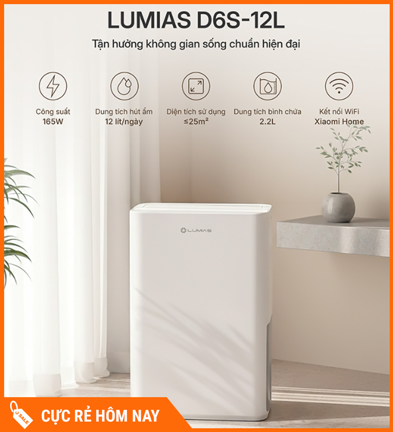 Lumias D6S-12L sở hữu thiết kế gọn gàng, hiện đại, tông trắng tinh tế, dễ hài hòa với nhiều phong cách nội thất. Kích thước tối ưu giúp bạn dễ đặt ở phòng ngủ, phòng khách nhỏ, phòng làm việc, hoặc gần tủ quần áo/kệ giày—những khu vực thường dễ tích ẩm. Chất liệu nhựa ABS bền bỉ, dễ lau chùi, phù hợp sử dụng lâu dài trong môi trường ẩm.