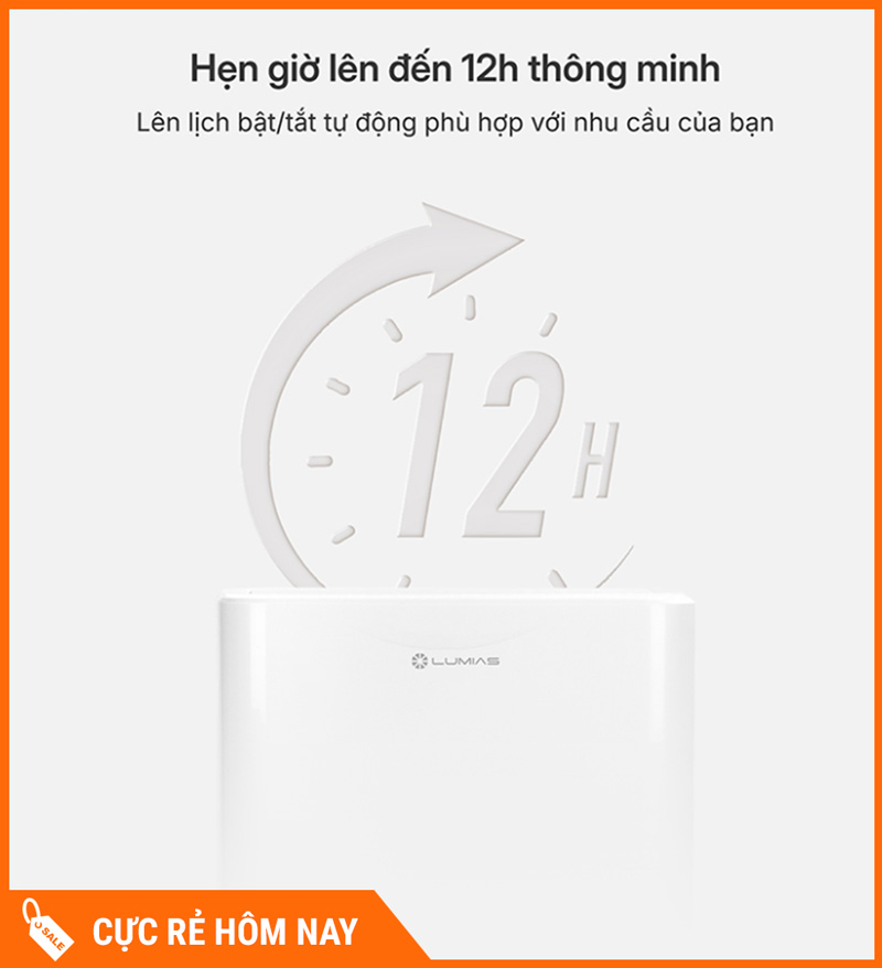 | Thời gian hẹn giờ | 12 giờ (trên app/máy) |