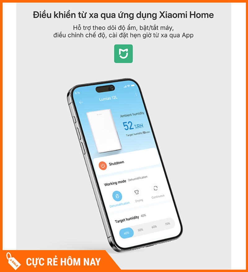 Máy hỗ trợ điều khiển thông minh qua ứng dụng MiHome, giúp bạn quản lý thiết bị ngay trên smartphone: bật/tắt, điều chỉnh chế độ và theo dõi vận hành linh hoạt. Rất tiện cho người bận rộn hoặc khi bạn đang ở phòng khác mà không muốn thao tác trực tiếp trên máy.