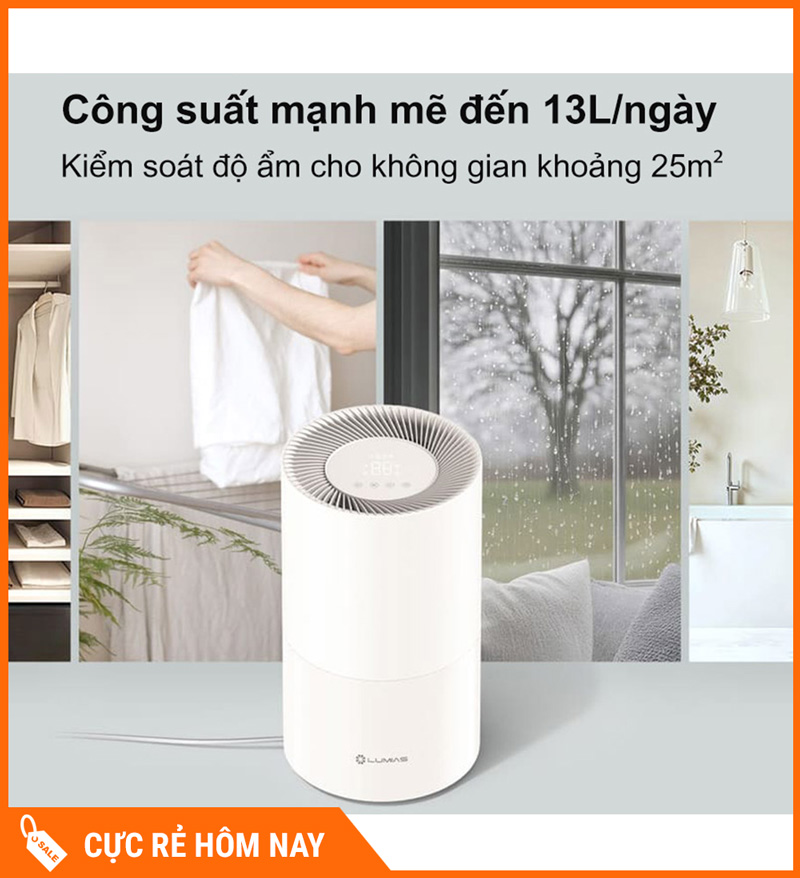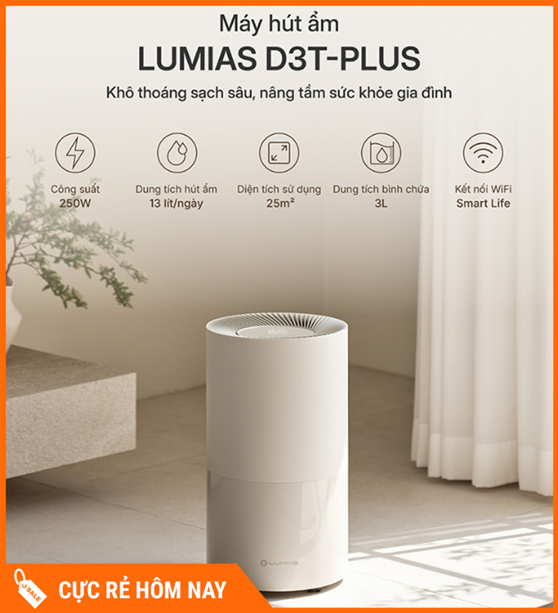 Máy hút ẩm Lumias D3T-PLUS – Hàng chính hãng là giải pháp kiểm soát độ ẩm tối ưu cho khí hậu Việt Nam, đặc biệt vào mùa nồm ẩm, mưa kéo dài hoặc không gian bí gió (chung cư, phòng ngủ đóng kín, phòng có nhiều đồ vải). Máy giúp giảm độ ẩm nhanh, hạn chế mùi ẩm khó chịu, nấm mốc và tình trạng sàn nhà “dính dính” khi trời nồm.
