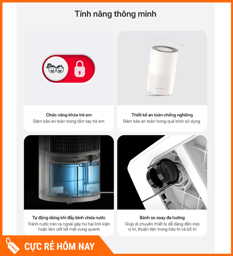 Nếu bạn đang cần một chiếc máy hút ẩm mạnh – tiện – thông minh, thì Lumias D3T-PLUS hàng chính hãng là lựa chọn rất đáng cân nhắc. Máy nổi bật với bình 3L sử dụng thoải mái, có ống xả liên tục để chạy dài, đầy đủ tính năng an toàn như hẹn giờ – khóa trẻ em – tự dừng khi đầy nước – rã đông tự động, cùng lưu lượng gió 140m³/h giúp hút ẩm nhanh và đồng đều. Phù hợp cho gia đình Việt trong mùa nồm ẩm, mưa kéo dài hoặc không gian cần kiểm soát ẩm thường xuyên.