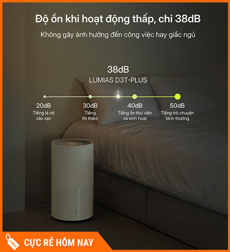 Lumias D3T-PLUS sở hữu thiết kế gọn đẹp, hiện đại, dễ bố trí ở nhiều vị trí như phòng ngủ, phòng khách, phòng làm việc hay khu vực phơi đồ trong nhà mà không chiếm nhiều diện tích. Kiểu dáng tối giản giúp máy “hợp” với đa số không gian sống, từ căn hộ chung cư đến nhà phố.