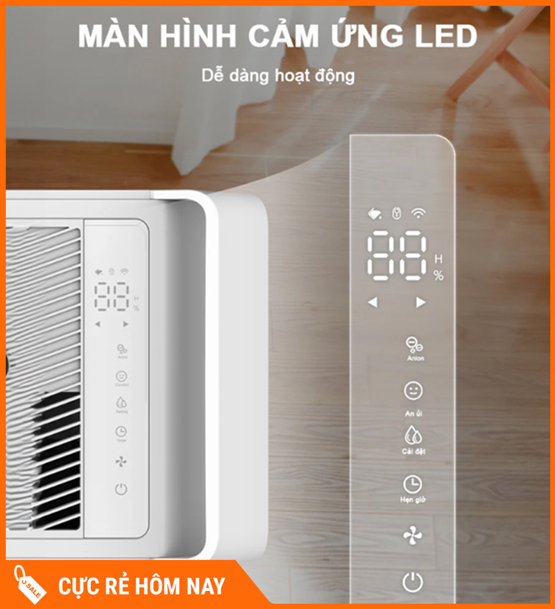Máy được trang bị màn hình LED trực quan, hiển thị rõ ràng các thông số cần thiết như độ ẩm, chế độ vận hành và trạng thái hoạt động. Người dùng có thể thao tác nhanh – dễ hiểu, không cần nhiều hướng dẫn phức tạp, phù hợp cho mọi đối tượng sử dụng trong gia đình.
