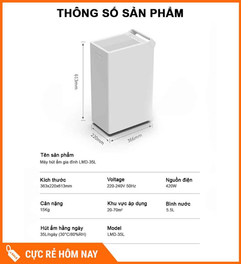 Hút ẩm mạnh 35L/ngày, giảm nồm ẩm nhanh
