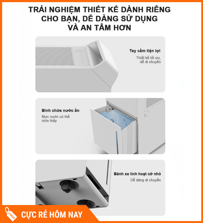 Trời nồm bất chợt → bạn bật máy từ công ty để về nhà là phòng đã khô, đồ đạc không bị ẩm mốc.
