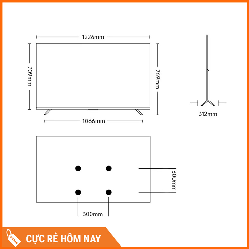 | Kích thước có chân đế | 1226 x 312 x 769mm |