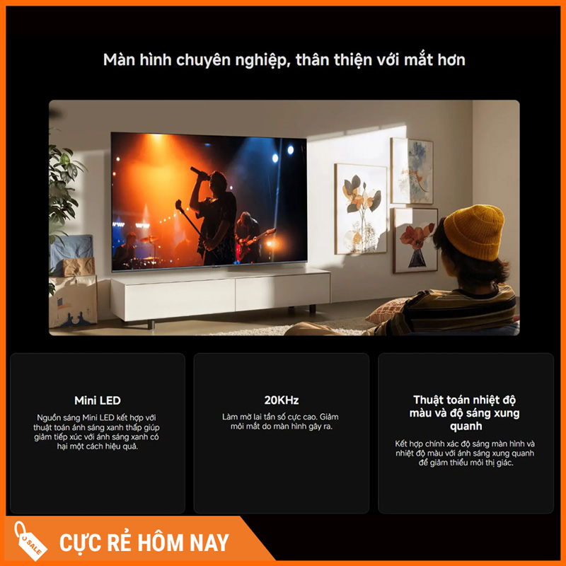 Một ưu điểm rất thực tế của Tivi Xiaomi S Mini LED 55 inch 2026 là khả năng hỗ trợ bảo vệ mắt thông qua công nghệ giảm ánh sáng xanh và điều chỉnh thông minh. Trong bối cảnh TV ngày nay không còn chỉ dùng để xem vài giờ ngắn mà thường hoạt động lâu trong sinh hoạt gia đình, đây là một tính năng rất đáng giá.