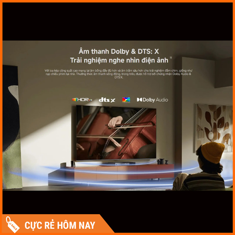 Không chỉ dừng ở phần hình ảnh, Xiaomi cũng đầu tư vào trải nghiệm âm thanh cho mẫu TV này với bộ ba công nghệ Dolby Audio, DTS:X và Xiaomi Sound. Sự kết hợp này giúp TV mang lại chất âm rõ hơn, có chiều sâu hơn và phù hợp hơn với nhiều loại nội dung khác nhau.