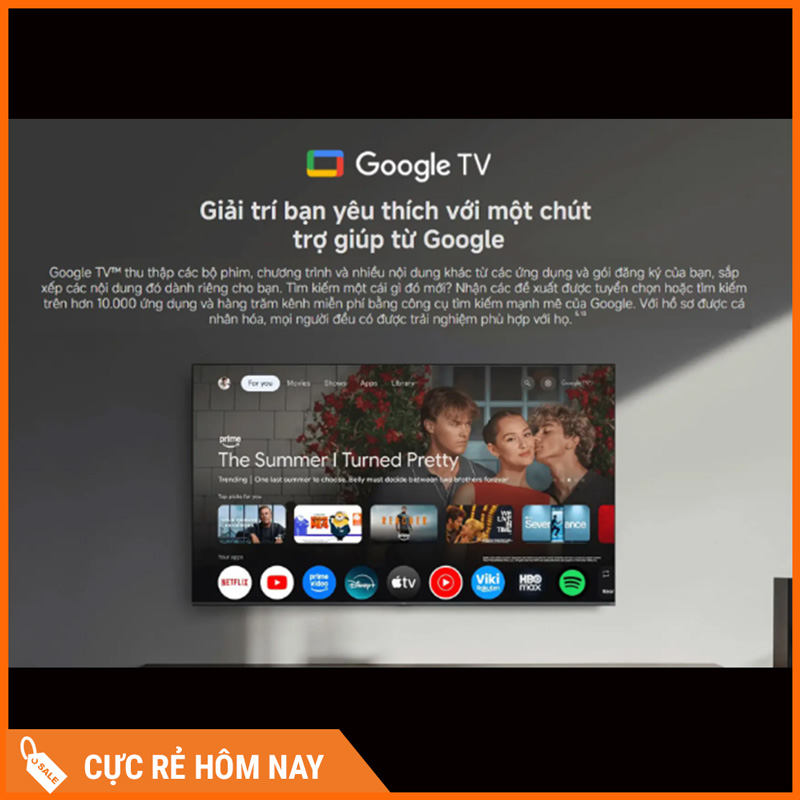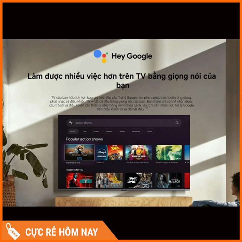 GoogleTV™ là một trong những điểm mạnh giúp mẫu TV này thân thiện với người dùng đại chúng. Giao diện được tổ chức trực quan, dễ hiểu và quen thuộc, giúp người dùng tiếp cận nội dung nhanh hơn mà không mất quá nhiều thời gian làm quen.