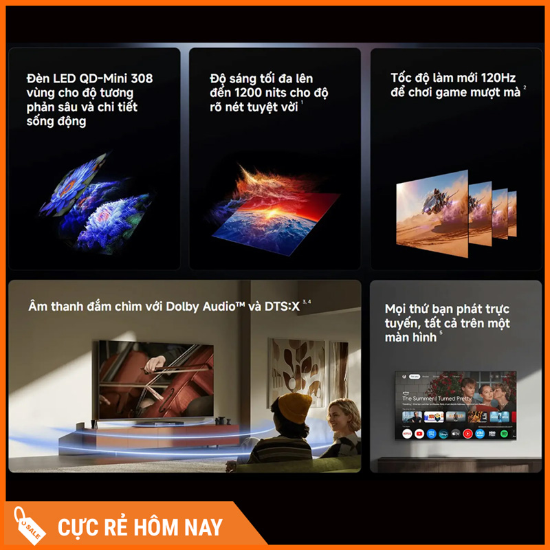 Điểm nổi bật của mẫu TV này nằm ở sự kết hợp giữa công nghệ QD-Mini LED, độ sáng cao, khả năng tái tạo màu sắc tốt, hệ điều hành Google TV™ cùng hệ thống kết nối đa dạng. Không chỉ phục vụ nhu cầu xem nội dung hằng ngày, đây còn là một lựa chọn đáng cân nhắc cho những ai muốn nâng cấp trải nghiệm xem phim, giải trí trực tuyến và tận hưởng hệ sinh thái thông minh thuận tiện hơn.