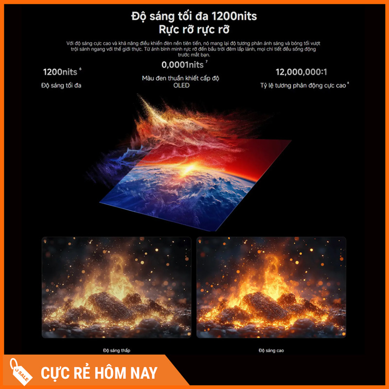 | Độ sáng tối đa | Lên đến 1200 nits |